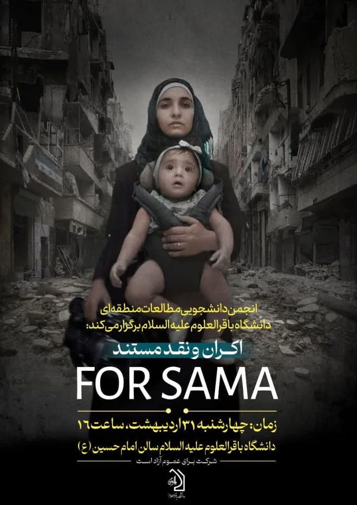 مستند «FOR SAMA» به همت انجمن دانشجویی مطالعات منطقهای اکران و نقد میشود.