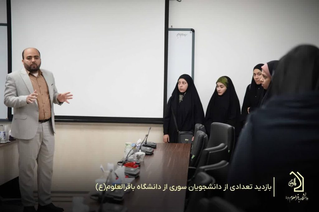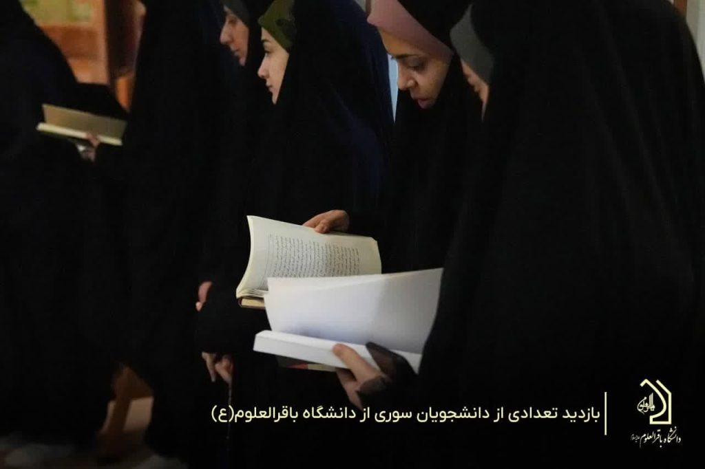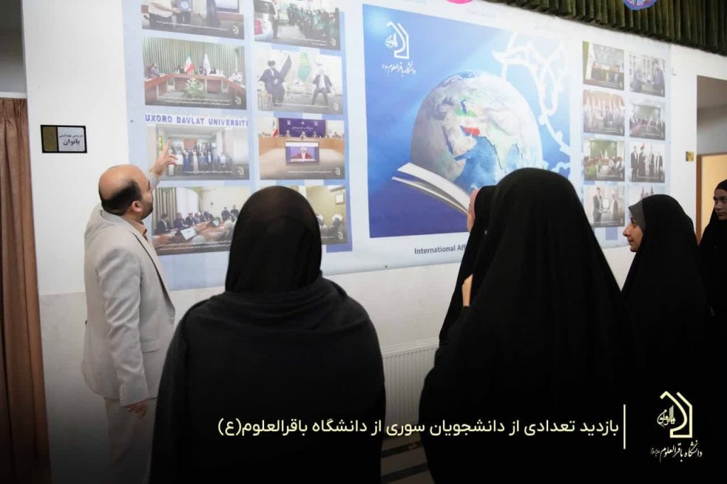 تعدادی از بانوان دانشجوی کشور سوریه ضمن بازدید از بخش‌های مختلف دانشگاه از جمله محیط‌های آموزشی، سالن نشست‌های علمی، مجتمع علامه طباطبائی و کتابخانه، با تاریخچه دانشگاه باقرالعلوم(ع)، رشته‌های تحصیلی و دستاوردهای ملی و بین‌المللی دانشگاه آشنا شدند.