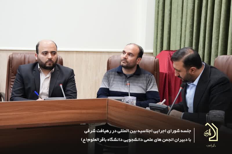 به گزارش خبرنگار روابط عمومی دانشگاه باقرالعلوم علیه السلام، جلسه شورای اجرایی اجلاسیه بین‌المللی «حقوق بشر در رهیافت شرقی» با دبیران انجمن‌های علمی دانشجویی دانشگاه باقرالعلوم علیه السلام بعدازظهر امروز در سالن شهید بهشتی برگزار شد. حجت الاسلام سیداحسان رفیعی علوی رئیس دانشگاه نیز در این جلسه حضور پیدا کرد.