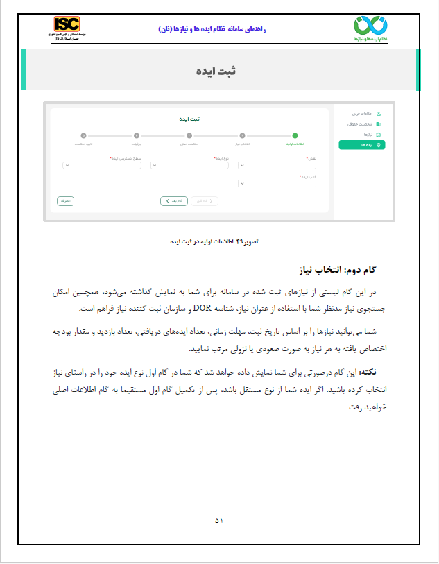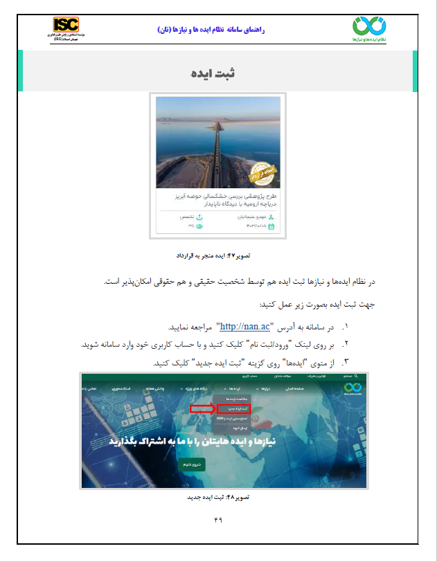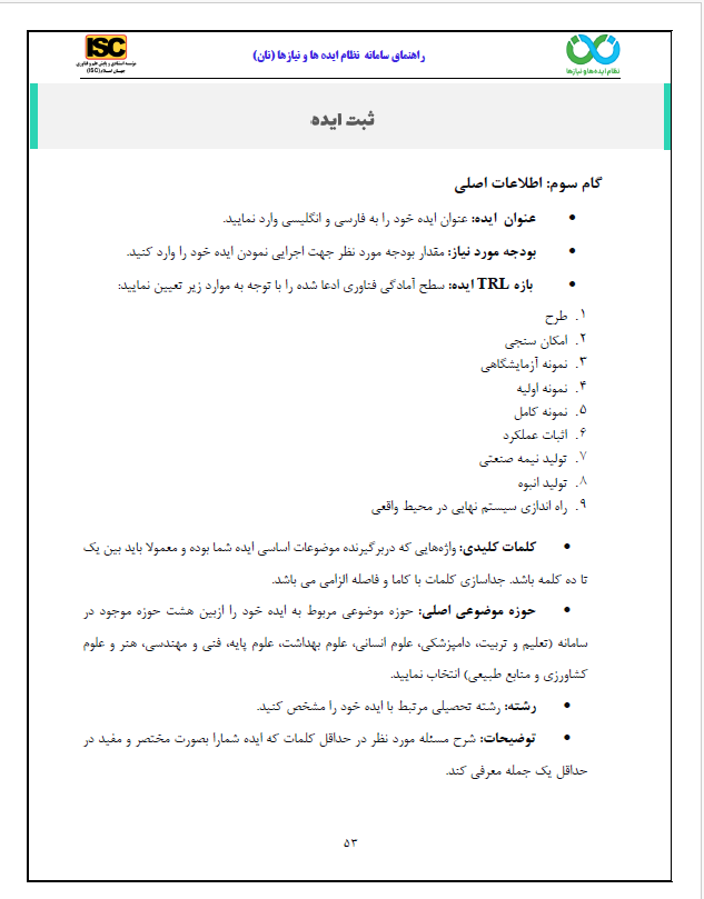 گفتنی است، بهمنظور تسهیل فرآیند مشارکت، پوشه راهنمای تصویری ثبت ایده در سامانه «نان» بههمراه فایل PDF شامل فهرست کامل نیازهای استانداری فارس و لینک مستقیم هر یک از نیازها، در پیوست این اطلاعیه در دسترس قرار گرفته است. علاقهمندان میتوانند با مطالعه دقیق این مستندات، نسبت به انتخاب نیاز متناسب با حوزه تخصصی خود و ثبت ایده اقدام کنند.
