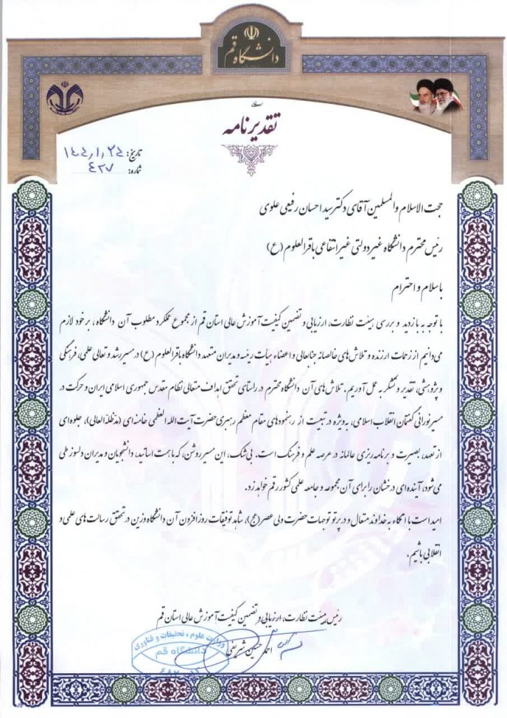 این موفقیت ارزشمند، حاصل تلاشهای خالصانهٔ اساتید، پژوهشگران و دانشجویان این دانشگاه و همچنین تعهد به کیفیتبخشی به آموزش علوم انسانی با رویکرد اسلامی است.