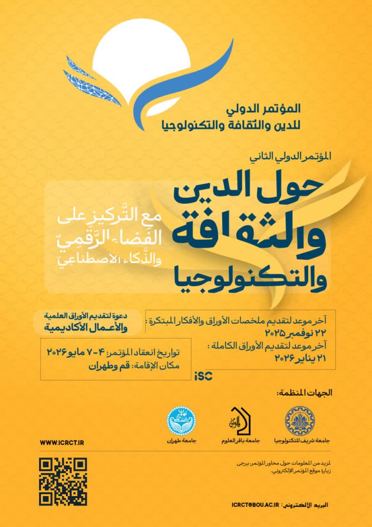 به همت دانشگاه باقرالعلوم(ع) و با همکاری دانشگاه صنعتی شریف و دانشگاه تهران، دومین همایش بینالمللی «دین، فرهنگ و فناوری» با تمرکز بر فضای مجازی و هوش مصنوعی برگزار خواهد شد.