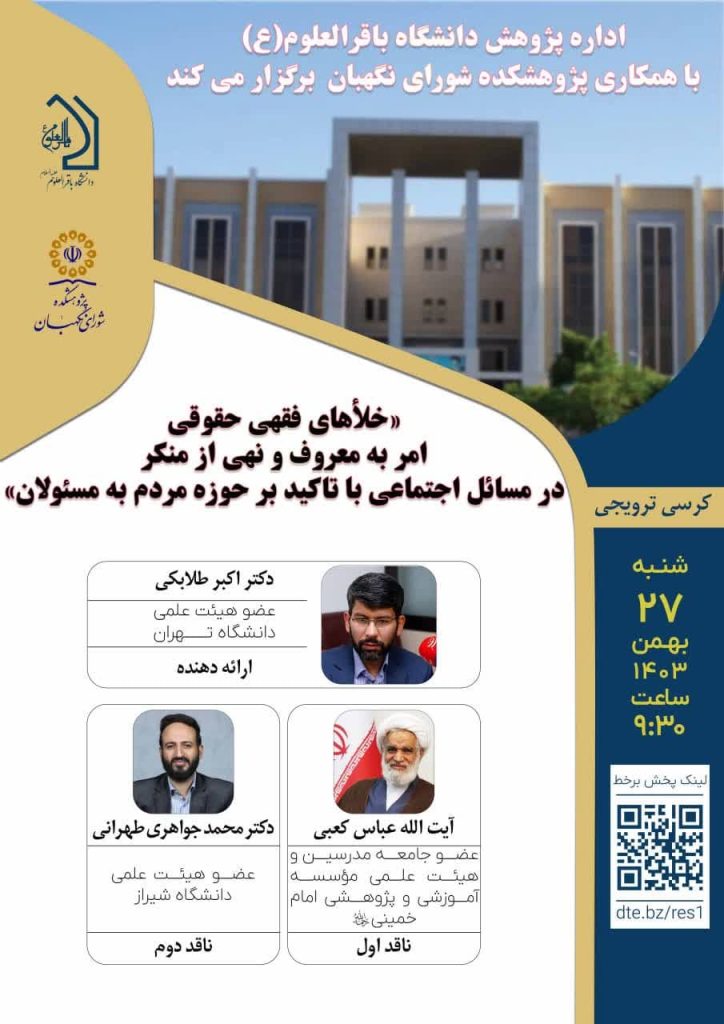 اداره پژوهش دانشگاه باقرالعلوم (علیه السلام) با همکاری پژوهشکده شورای نگهبان برگزار میکند: