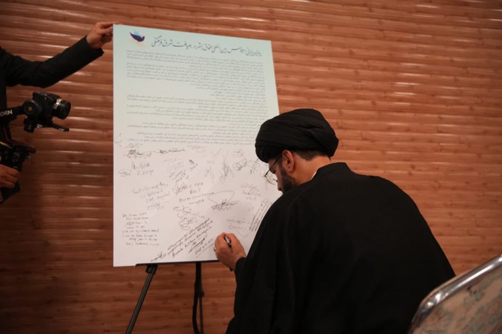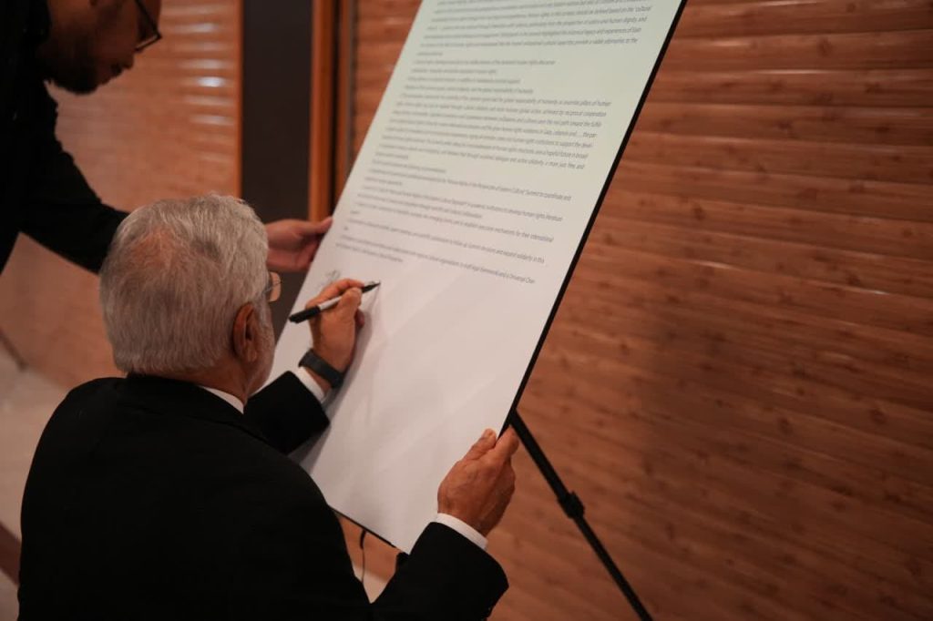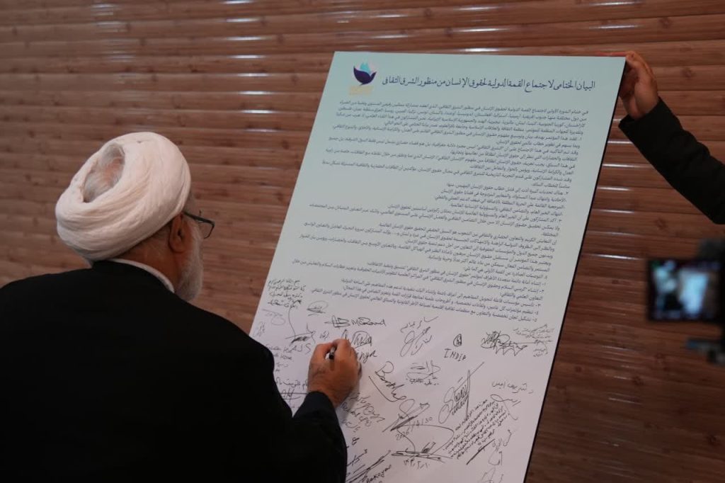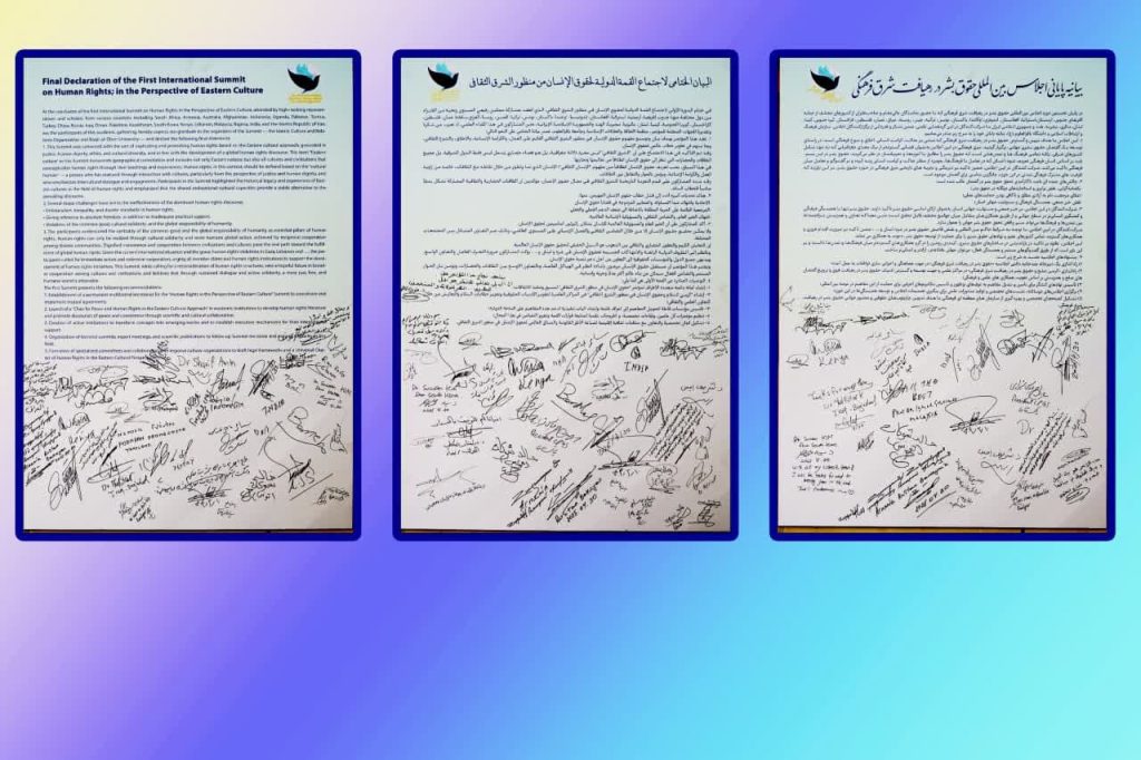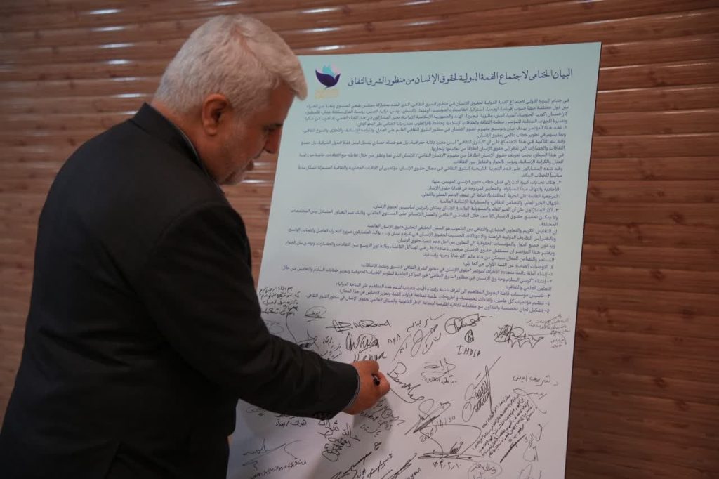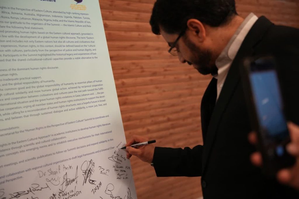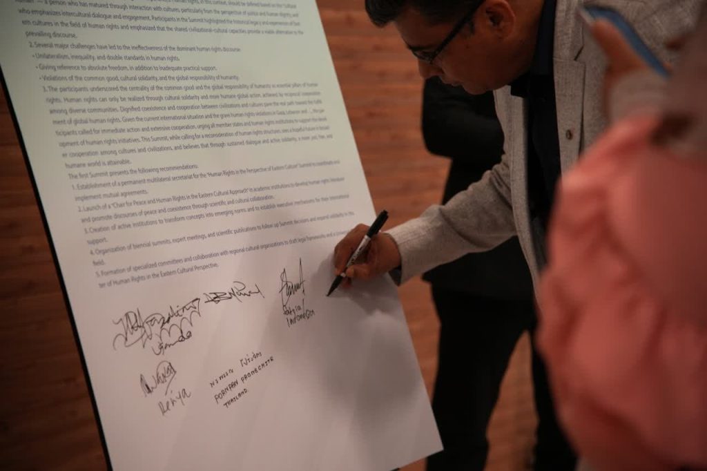 در پایان نخستین اجلاس بینالمللی حقوق بشر در رهیافت شرقی، مهمانان و شرکت کنندگان در این همایش، بیاینه پایانی را امضاء کردند.