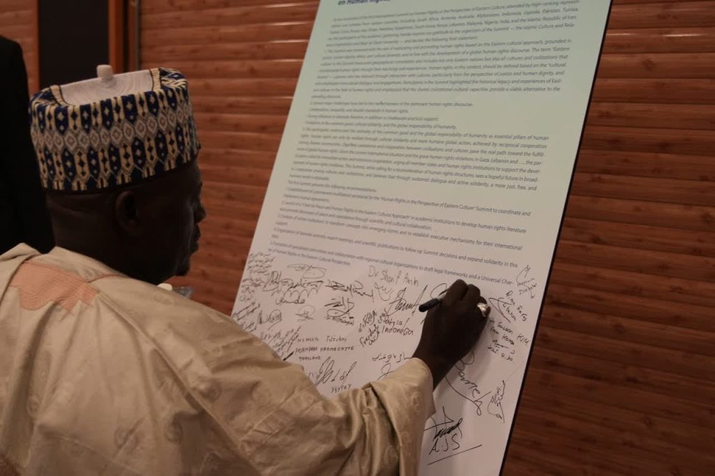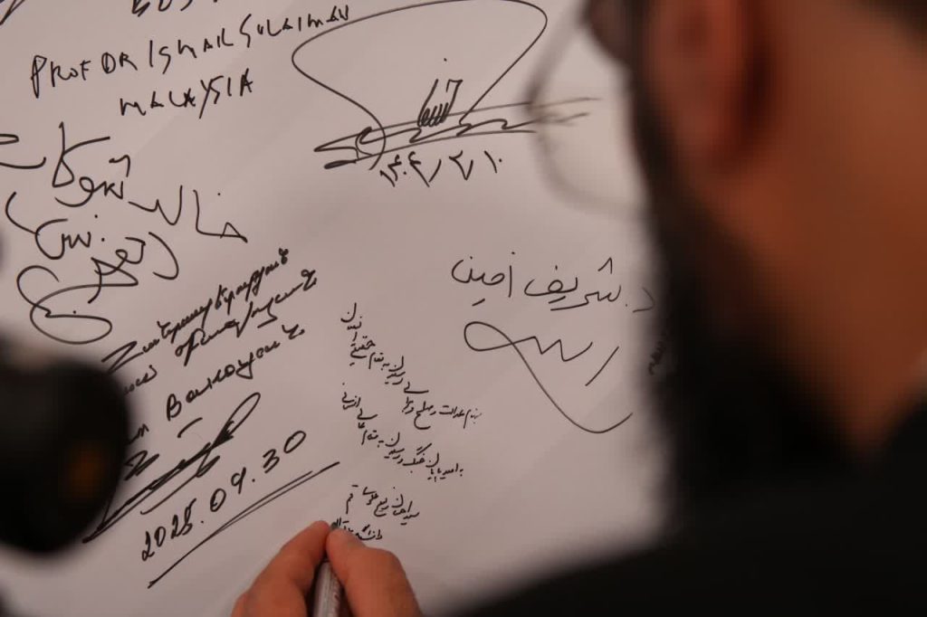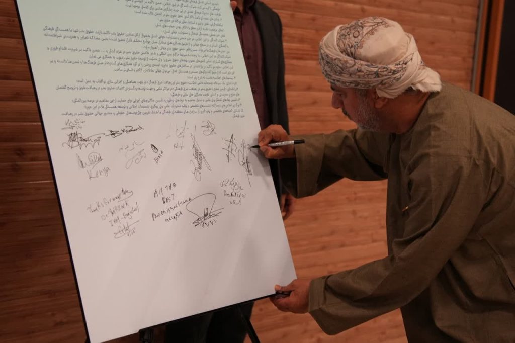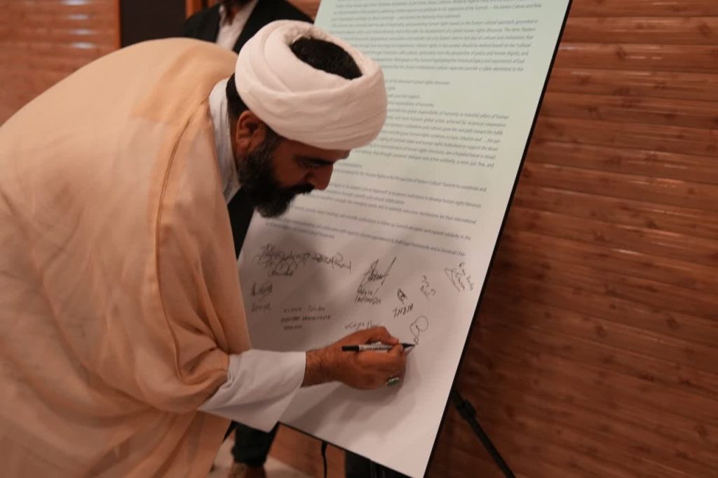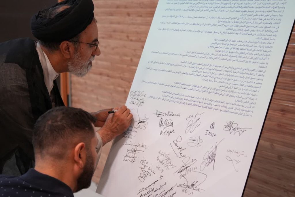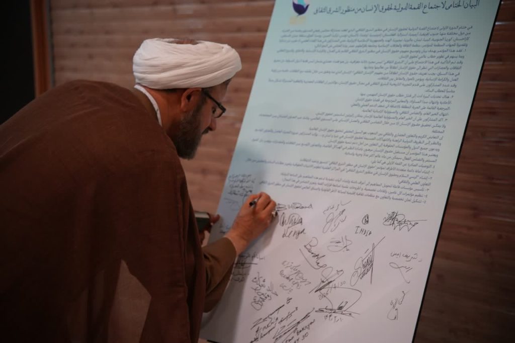 در پایان نخستین اجلاس بینالمللی حقوق بشر در رهیافت شرقی، مهمانان و شرکت کنندگان در این همایش، بیاینه پایانی را امضاء کردند.