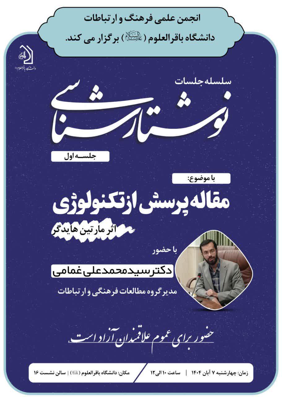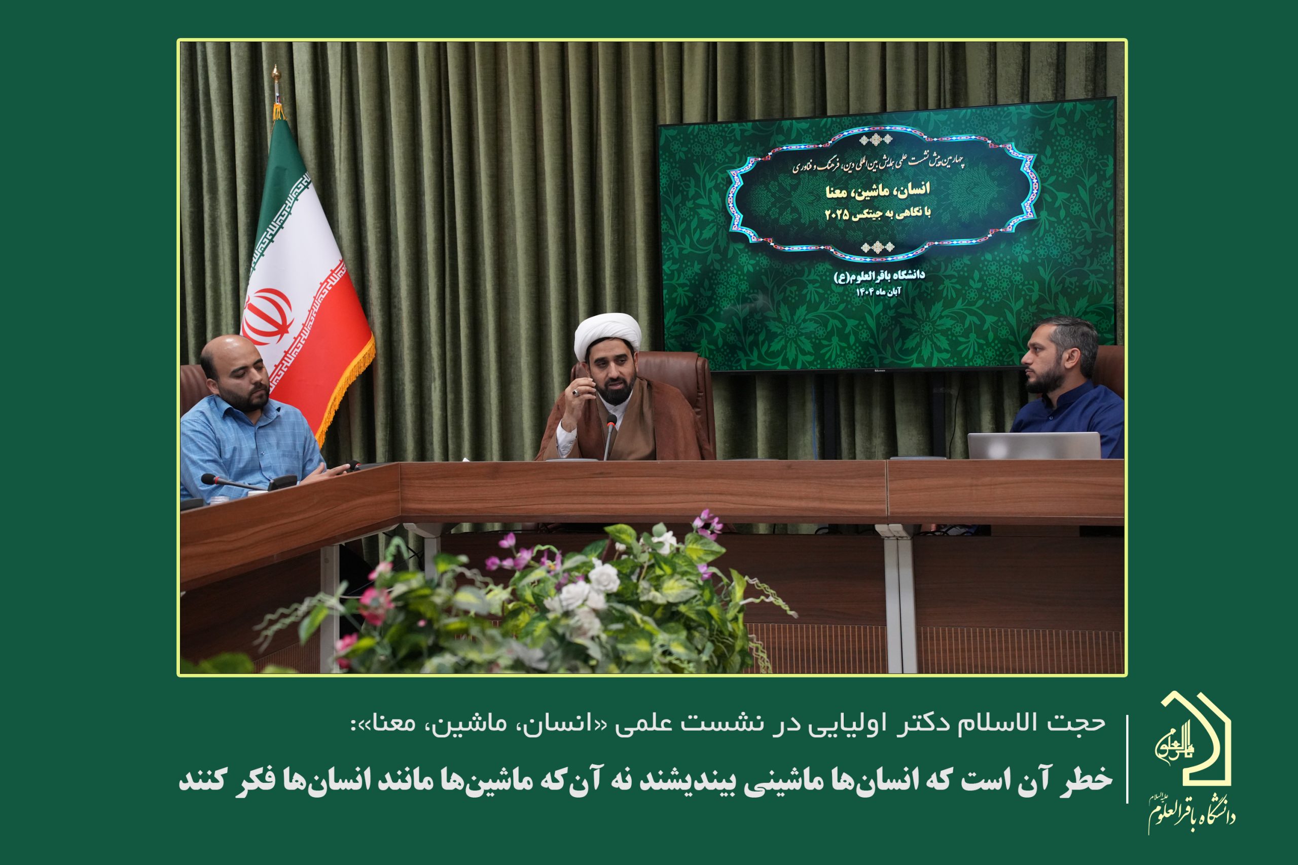 چهارمین پیشنشست علمی همایش بینالمللی «دین، فرهنگ و فناوری» با همکاری انجمن علمی فرهنگ و ارتباطات دانشگاه باقرالعلوم(ع) برگزار شد. در این نشست، حجتالاسلام دکتر احمد اولیایی با رویکردی فلسفی و انتقادی به بررسی نسبت انسان و ماشین پرداخت و با تأکید بر تفاوتهای اساسی میان این دو گفت:«انسان موجودی معناساز است و معنا در […]