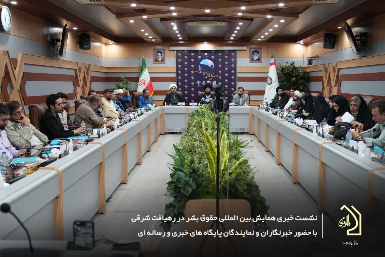 گزارش تصویری| نشست خبری همایش بینالمللی حقوق بشر در رهیافت شرقی نشست خبری همایش بینالمللی حقوق بشر در رهیافت شرقی با حضور حجت الاسلام سید احسان رفیعی علوی رئیس دانشگاه باقرالعلوم(ع)، خبرنگاران و اصحاب رسانههای مختلف برگزار شد. فلاح | فروردین ۲۴, ۱۴۰۴